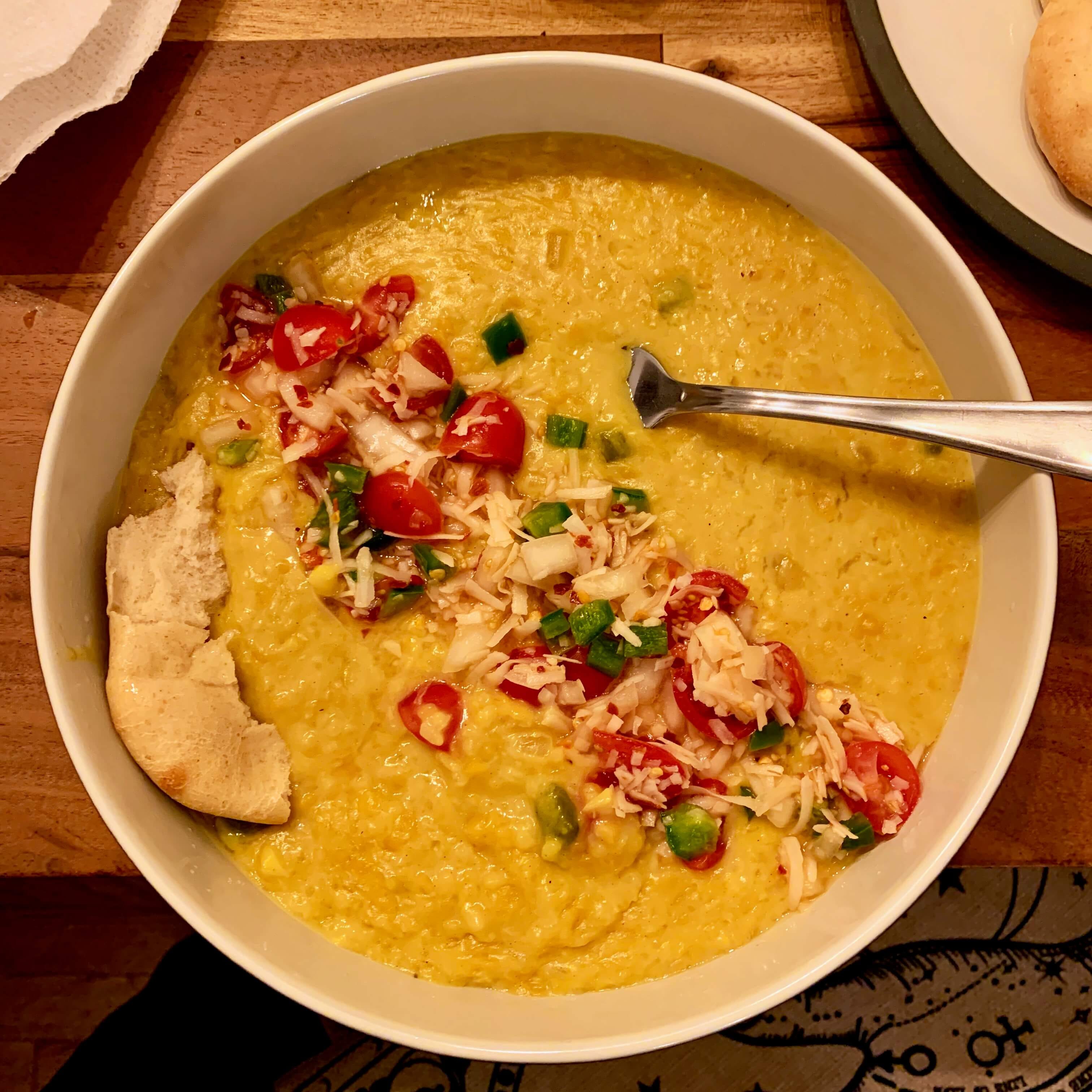 I paired this dal risotto with naan from Fresh India—I’m not going to give out that recipe, but she has a naan recipe over at NYT Cooking if you want to give that a gander. Or pick up the bread of your choice from your local Indian grocery.